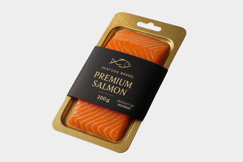 Banderolen für Meeresfrüchte übernehmen gleichzeitig die vollständige Kennzeichnung. Angaben zu Herkunft, Fanggebiet, Gewicht, Haltbarkeit oder Marke sind gut sichtbar aufgebracht und ersetzen zusätzliche Klebeetiketten. Dadurch entsteht eine aufgeräumte, hochwertige Produktpräsentation am Point of Sale.